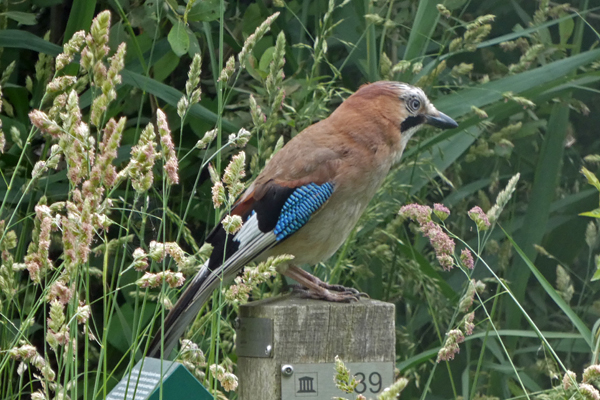 Naam: Gaai Wetenschappelijke naam: Garrulus glandarius Familie: Kraaien Zeldzaamheidsstatus in Nederland: Algemeen Zeldzaamheidsstatus in Frankrijk: Algemeen Vooral bekend onder de oude naam 'Vlaamse Gaai'. De wetenschappelijke naam is vrij te vertalen als 'voortdurend krassende eikelzoeker'. Ze kunnen luid schreeuwen waarmee ze de dieren waarschuwen bij gevaar. In het voorjaar kunnen ze ook heel aardige zangerige geluidjes maken, die men bij het horen vaak niet zo gauw kan thuisbrengen. |