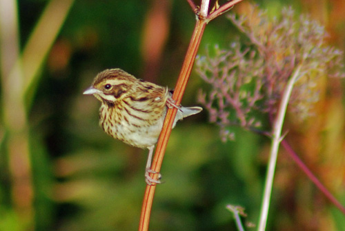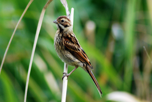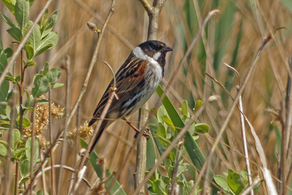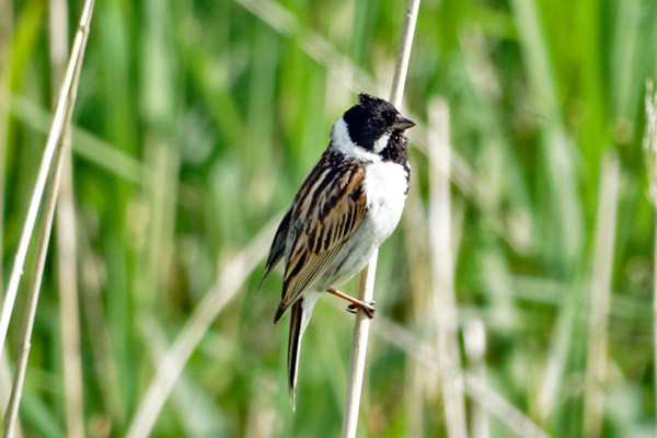 Naam: Rietgors Wetenschappelijke naam: Emberiza schoeniclus Familie: Gorzen Zeldzaamheidsstatus in Nederland: Algemeen Zeldzaamheidsstatus in Frankrijk: Algemeen Rietgorzen leven vooral in rietmoerassen. In het voorjaar kun je de mannetjes hoog in de toppen van struiken zien zingen. Ze bakenen zo hun territorium af. Bij gevaar schiet de vogel razendsnel naar beneden. |